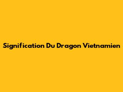 Signification Du Dragon Vietnamien