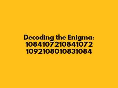 Alright guys, let's dive into something that looks like it came straight out of a hacker movie: 1084107210841072 1092108010831084. At first glance, it might seem like a random string of numbers, but trust me, there's often more than meets the eye. When faced with such alphanumeric mysteries, our mission is to dissect, analyze, and, ultimately, understand what this code could possibly represent. So, buckle up, because we are about to embark on a journey to decode this enigma!