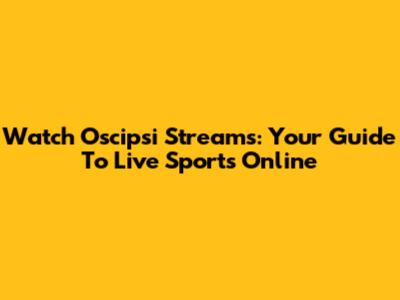 Watch Oscipsi Streams: Your Guide To Live Sports Online