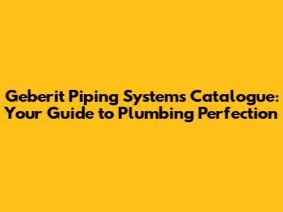 Hey guys! Are you diving into a new plumbing project or maybe upgrading your existing system? Let's talk about Geberit piping systems. This catalogue isn't just a list of products; it’s your roadmap to a reliable, efficient, and long-lasting plumbing setup. We're going to explore why Geberit stands out, what you can find in their extensive catalogue, and how to choose the right components for your specific needs. Trust me, understanding your options here can save you headaches (and costly repairs) down the road!