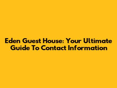 Eden Guest House: Your Ultimate Guide To Contact Information