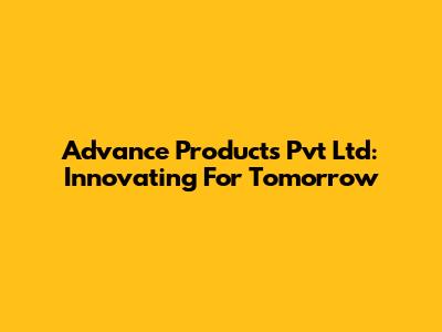Advance Products Pvt Ltd: Innovating For Tomorrow