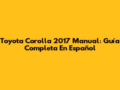 Toyota Corolla 2017 Manual: Guía Completa En Español
