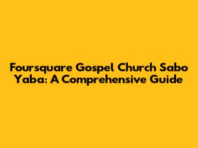 Foursquare Gospel Church Sabo Yaba: A Comprehensive Guide