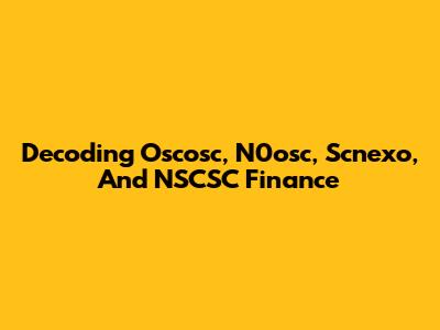 Decoding Oscosc, N0osc, Scnexo, And NSCSC Finance