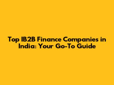 Why are IB2B Finance Companies Important for Indian Businesses?