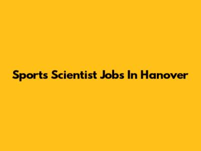 Sports Scientist Jobs In Hanover