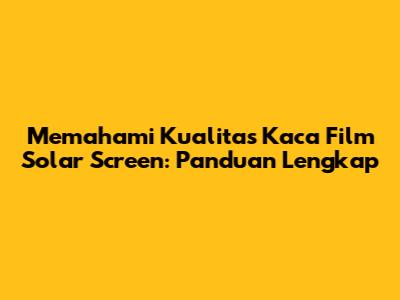 Memahami Kualitas Kaca Film Solar Screen: Panduan Lengkap